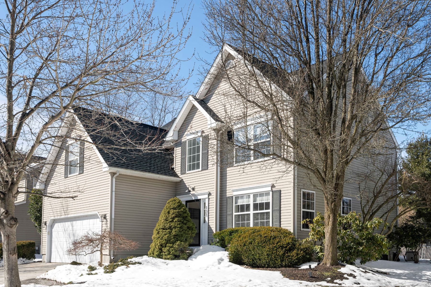 Welcome to this beautifully maintained home located in the highly sought after Riverwoods neighborhood and the New Hope-Solebury School District. Enter into a cozy, light-filled home with so much to offer. Warm & neutral color palette throughout, as well as generous crown moldings and wainscoting. The traditional first level offers a two-story entrance foyer, living room & dining room all with hardwood floors, plus an updated Craftsman style kitchen with an abundance of cabinetry, tile back splash, stainless-steel & black Bosch and Kenmore appliances, granite counters and a large center island which opens to the family room complete with a stately stone wood burning fireplace. A glass door in the kitchen opens to a patio overlooking the rear yard. A great spot to enjoy your morning coffee, for al-fresco dining or to sit and relax at any time of the day or evening! Continue on to the upper level where you’ll find the master suite complete with custom beamed ceiling, walk-in closet, ancillary sitting/dressing room/home office with glass doors & beautifully appointed full bath with jetted tub, glass shower, double bowl cherry vanity and radiant heat. The second bedroom can be accessed from either the hall or the master bedroom and would lend itself wonderfully as a nursery or office as well, with custom built in cabinetry. The remaining two bedrooms offer double closets. Updated hall bath and newer carpets as well. The unfinished basement offers great space for storage or separate fitness or craft space. Bilco doors are present should someone wish to finish the space. Stamped concrete driveway. This home is just a short walk to both downtown New Hope & Lambertville for dining, shopping & entertainment, as well as access to the towpath! Showings begin at the Open House on March 6 at 11:00am. Offers to be submitted by Monday, March 8 at 5:00pm.