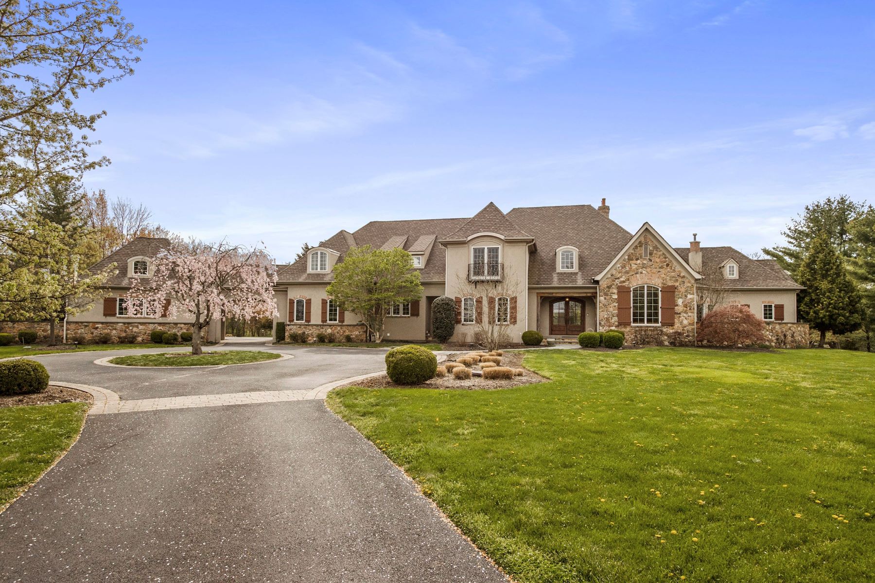 Highland Manor is everything you need in a residence now and in the future. On 3+ acres overlooking 178 deed-restricted acres in a prime Upper Makefield Township location, this Costigan & Hess-built home has gracious, airy living spaces with oak hardwood floors, upgraded millwork and moldings and vaulted ceilings. If home has become more important than ever to you as a place that must function as a school/office/cafeteria/playground, then look no further than this property. From its recreation-packed finished lower level with home theater, fully outfitted wet bar, fitness space, full bath perfect for those using the backyard pool, and games and media areas to its 14,000+ square feet of formal and casual rooms, including a gorgeous wood-paneled, vaulted-ceiling executive office with fireplace, study/play space and roomy private quarters, it serves all of your needs. Eating at home a lot these days? The timeless chef’s kitchen with two islands, two cooking areas, double ovens, a coffee bar and butler’s pantry, among other features, is superbly outfitted in terms of equipment (Miele, Wolf, Sub-Zero) and storage. Positioned in the heart of the house, the kitchen is open to a casual dining area and a family room that opens to a rear covered porch. A formal sitting area with beamed ceiling and fireplace, formal dining room with tray ceiling, guest powder room, a main bedroom suite complete with sumptuous his and hers bathrooms and walk-in closets, an elevator to all three floors, and a utility section with full laundry room, powder room and access to the attached three-car garage and detached two-car garage complete the first floor. The first-floor main suite is a retreat unto itself with a sitting room with fireplace. The sleeping quarters open to the covered rear porch. The baths offer a steam shower, jetted tub and oversized shower with multiple showerheads and body sprays. A graceful main stairwell leads to a second floor with 5 large en suite bedrooms, one of which is a perfect au pair suite with sitting room, kitchenette, full bath and bedroom. This home has four sets of French doors to outside spaces, four fireplaces, a back stairwell, central vac, security system and intercom system. For outdoor recreation, a pool and spa await. The multi-level terrace includes a BBQ area and plenty of lounging spots for entertaining or relaxation. Well located for those who need to be near Princeton or Philadelphia.