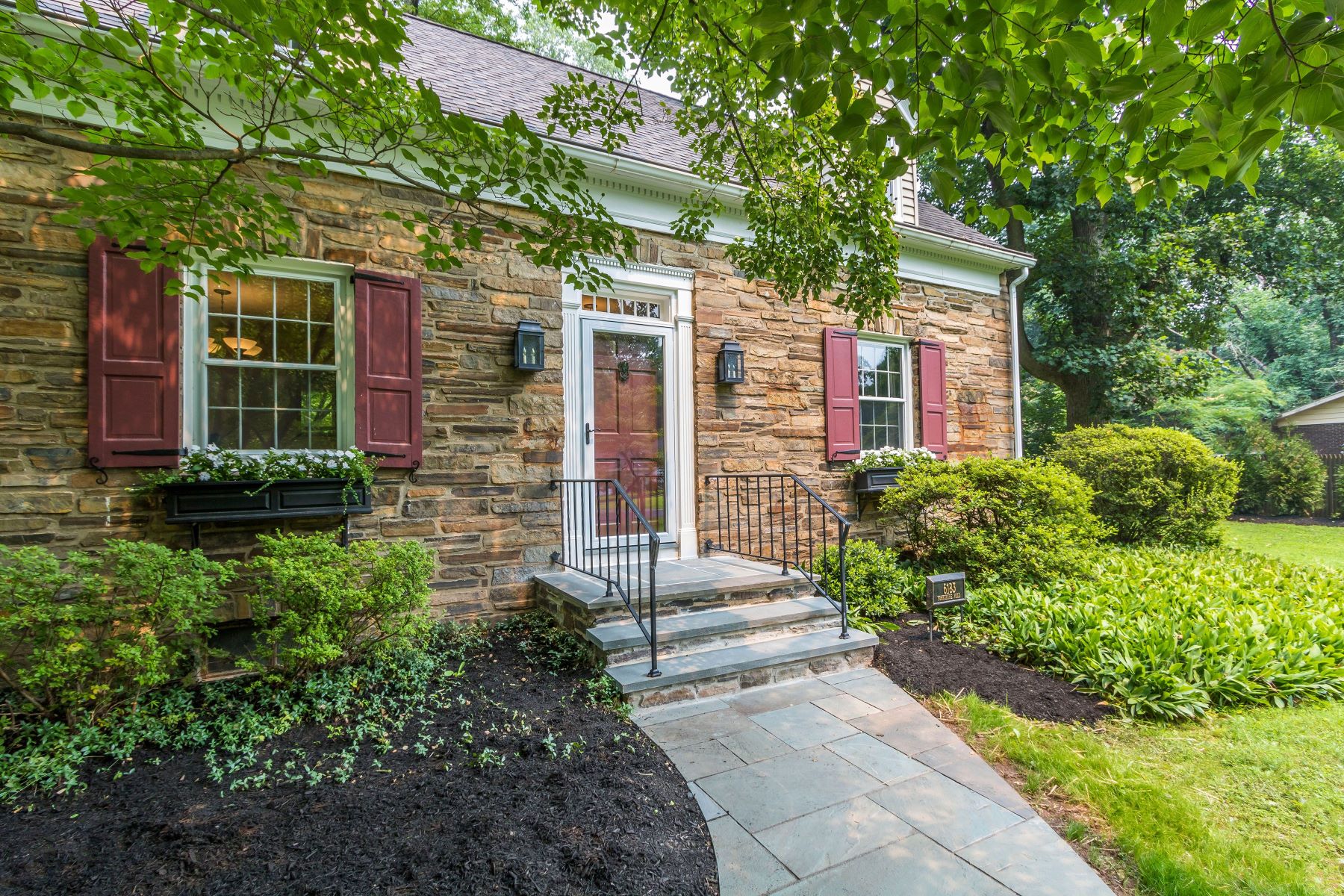 Tucked in old shade, this mid-century cottage with three bedrooms and two and one-half baths has lots of curb appeal and interior charm! Flanked by a formal dining room and a large living room with a beamed ceiling and dramatic stone fireplace, the center entrance foyer opens to a rear view of greenery. Seasoned oak floors blend seamlessly with a tile floor sunroom addition accentuated by a shed ceiling with skylights and a rear window wall of glass doors. The study, with a shed ceiling and skylight, has a door to the sunroom and French doors to the living room. A half bath is centrally located. Open to the sunroom, the kitchen includes a double stainless sink, ASKO stainless dishwasher, GE Profile duel fuel 5 burner range (electric/propane), lots of storage and a center breakfast bar with a granite counter top and overhead cabinetry with glass doors. Upstairs, unique bedrooms feature cove ceilings, alcoves, dormered spaces and a cedar closet. The hall bath includes a stall shower and the main bath includes a sunken tub with shower, pedestal sink, separate vanity and skylight. The major components of the house have been replaced by the current owner including the roof in 2016 (50-year warranty), but the focal point of this sweet house is the expansive rear patio of antique stone and the view of lush shrubbery and specimen plantings that can be enjoyed year-round. All this and beautiful Solebury Township – close to major roads, wonderful schools, and great shopping and dining!