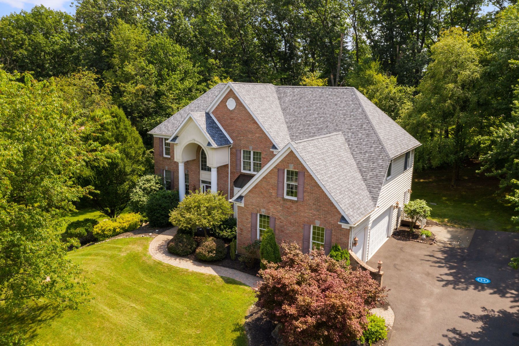 Tucked away in the Southern Lehigh countryside, this five-bedroom, four-bath residence is open and airy with interiors awash in natural light thanks to a wealth of windows throughout and skylights in the family room. Its floor plan features neutral hardwood floors throughout the first floor, a leaded-glass front door with sidelights and wide doorways creating that openness that also flows extremely well for entertaining and everyday living. Formal living and dining rooms flank the main stairwell. The open kitchen/family room is really the heart of the home with a vaulted ceiling, fireplace, two picture windows and a sunny casual dining area with a woodstove. The kitchen is ready for serious cooks with a walk-in pantry, Viking gas cooktop with grill and ventilation hood, KitchenAid built-in refrigerator/freezer, KitchenAid double wall ovens and built-in Viking microwave, plus dishwasher and double sink with pullout faucet. A breakfast bar and island, topped in granite along with the rest of the kitchen, complete this area. For convenience, there is a first-floor guest suite with full bath; first-floor laundry room and access to the garage. Private quarters include four upstairs bedrooms. The owner’s suite is a treat with a sitting area or office, large sleeping quarters, an extra-large walk-in closet and a bath outfitted with a jetted corner soaking tub, oversized seamless glass shower with two showerheads and a double vanity. A catwalk overlooking the family room leads to three additional bedrooms, one en suite and two sharing a full bath. The lower level has walkout access to the yard and has many possibilities should someone wish to create additional living space. A beautiful home in a location that is super convenient for those needing access to I-78, Lehigh University, the Promenade Shops or points south toward the Turnpike.