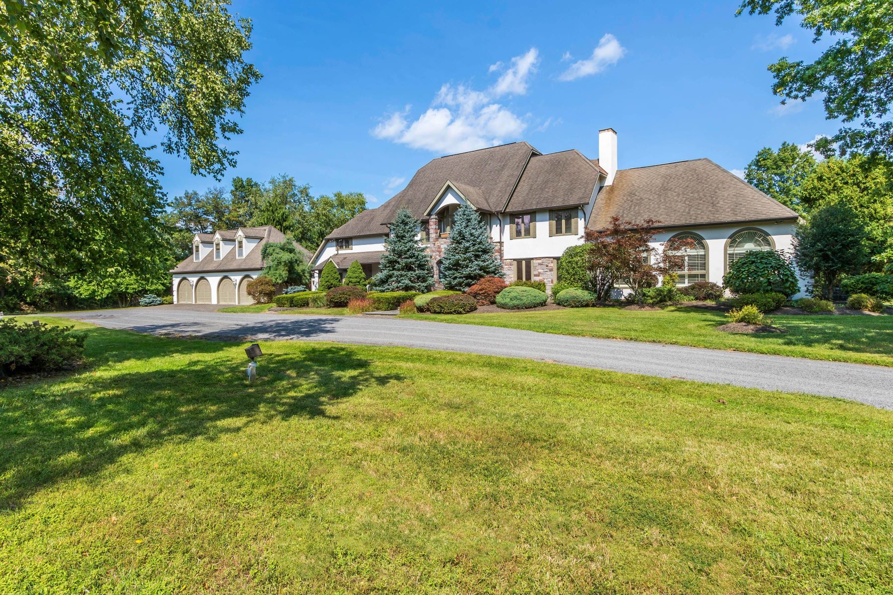 Rarely does a property come on the market that checks off all the boxes. A gated entrance takes you down a long private drive that winds around a large pond and opens to this almost 17-acre lovely estate property. The home offers large bright rooms with beautiful detail, hard wood floors, 4 fireplaces, walls of window and built ins. The first floor includes a huge family/gathering room, a formal living room, a formal dining room, a second more casual family room off the expansive eat in kitchen with a large center island, breakfast bar, massive counter space and butlers’ pantry. Each of the rooms open to a beautiful walled stone terrace with magnificent views of the gardens and meadows. This floor also offers an office as well as 2 half baths, a bedroom with full bath and its own private entrance perfect for an in-law or au pair suite, large mud room, huge laundry room and a back staircase. The second floor offers a master bedroom with balcony, and a master bath with jacuzzi tub, double vanity, and separate glass shower. There is also a large walk-in closet. There are an additional 3 bedrooms and 2 full baths. The finished third floors offers a huge walk-in cedar closest and a large playroom / media room for the family. The property includes a tennis court, large inground heated pool with spa and a barn with 5 box stalls, tack room and wash area plus fenced pastures. There is a one-bedroom apartment over the barn and several other outbuildings for equipment storage. There is also a 4-car attached garage. This private estate property is located just 15 minutes from New Hope and Doylestown and 75 minutes to NYC and Philadelphia.