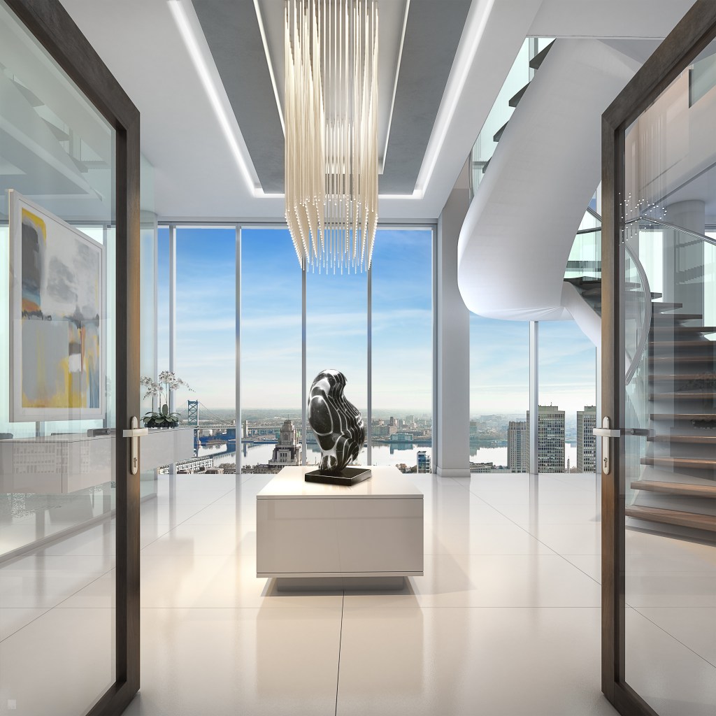 Located on the top two floors of Philadelphia’s most sought-after building, 500 Walnut, sits the pinnacle residence of the city, the Penthouse at 500 Walnut. From the breathtaking, floor-to-ceiling views throughout its interiors to its prestigious Society Hill location, this Penthouse, magnificent in every detail, is modern luxury set amid America’s most historic square mile. From the moment you enter this spectacular residence, take in unencumbered views of the Delaware River, extreme privacy and 8,400 square feet of interiors with an astounding 2,500 square feet of outdoor space. Nothing stands between you and the views. 500 Walnut is designed to provide its residents with privacy and top-grade amenities including no-touch, automated garage parking. Contact listing agent Douglas Pearson to learn more: dpearson@kurfiss.com or 267.907.2590. Office: 215.735.2225.