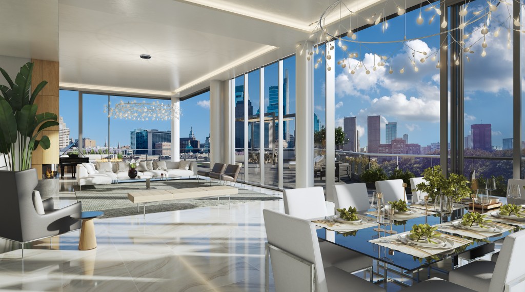 A “perfect 10” in every way, this customizable, pinnacle residence with unrivaled views encompasses the entire 10th floor of 2100 Hamilton, a new, exclusive, luxury condominium building with only 27 units in the heart of the Art Museum Area designed by award-winning architect Cecil Baker to offer the ultimate in privacy. Pull into the garage drop-off station where a valet is available to assist you. The elevator, which uses facial-recognition technology, will take you directly into your residence. This singular penthouse offers 5,256 square feet of raw space with 3,700 square feet of continuous outdoor space offering spectacular vistas of the city skyline and the surrounding museums. Full array of amenities. Contact listing agent Douglas Pearson to learn more: dpearson@kurfiss.com or 267.907.2590. Office: 215.735.2225.