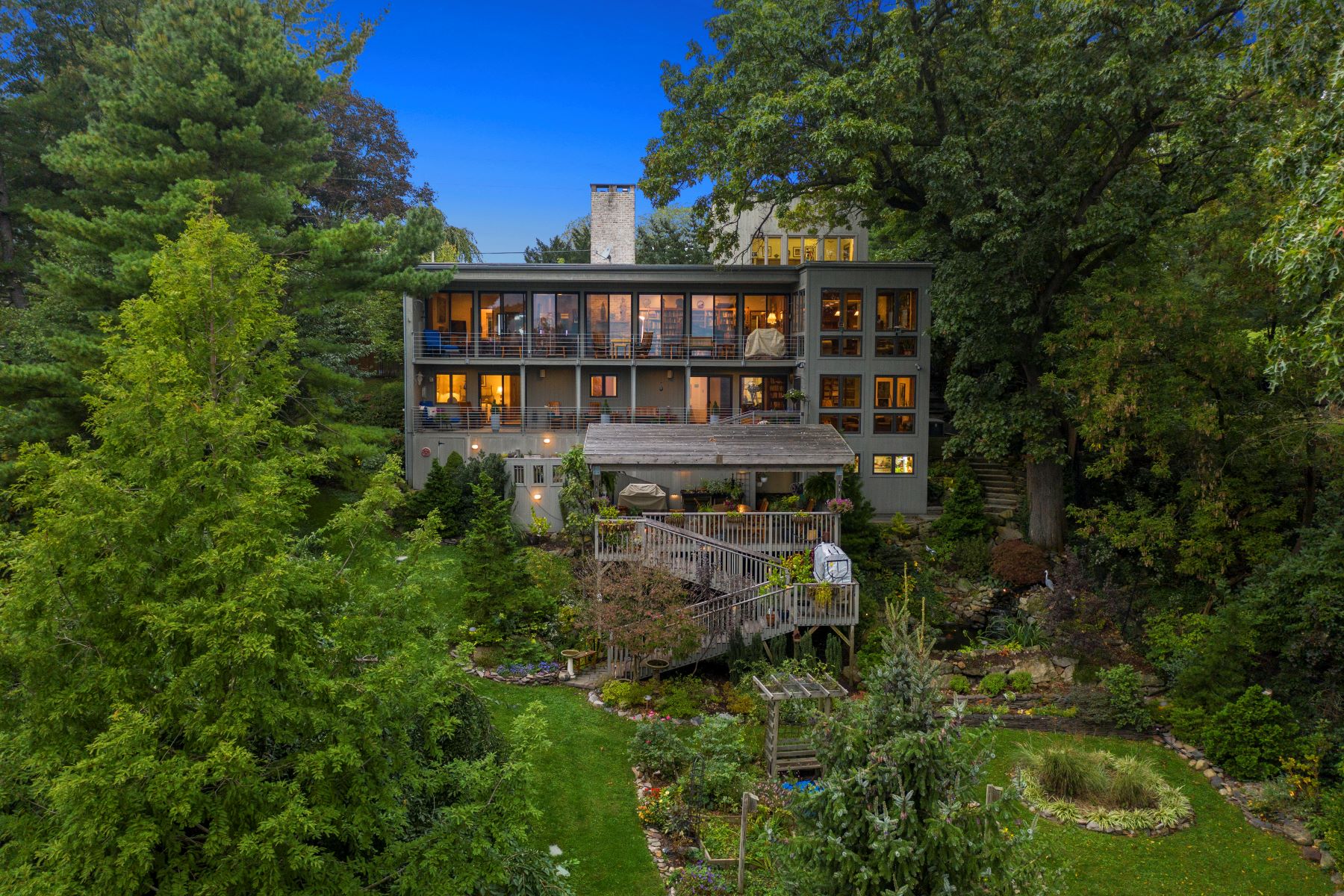 Welcome to this one-of-a-kind, 4580 square foot, architect-designed, Midcentury Modern-inspired residence with commanding long-distance views from its prime location in Easton’s sought-after College Hill area. A hidden front door opens to a gallery-style reception area. Behind the wall is a world of wood, glass and breathtaking views! A large living room and glass-enveloped sunroom showcase …